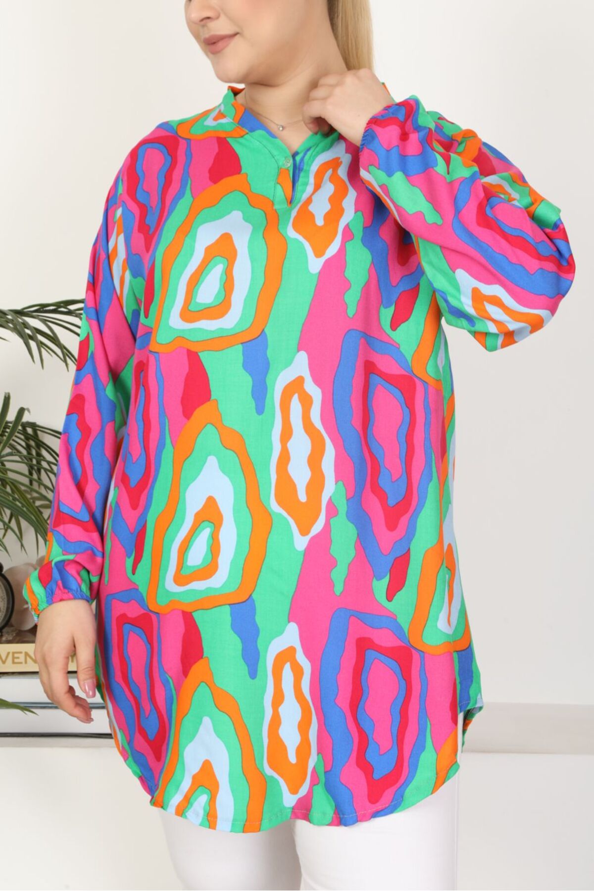 Tunikteks Dokuma viskon yumuşak rahat desenli tunik
