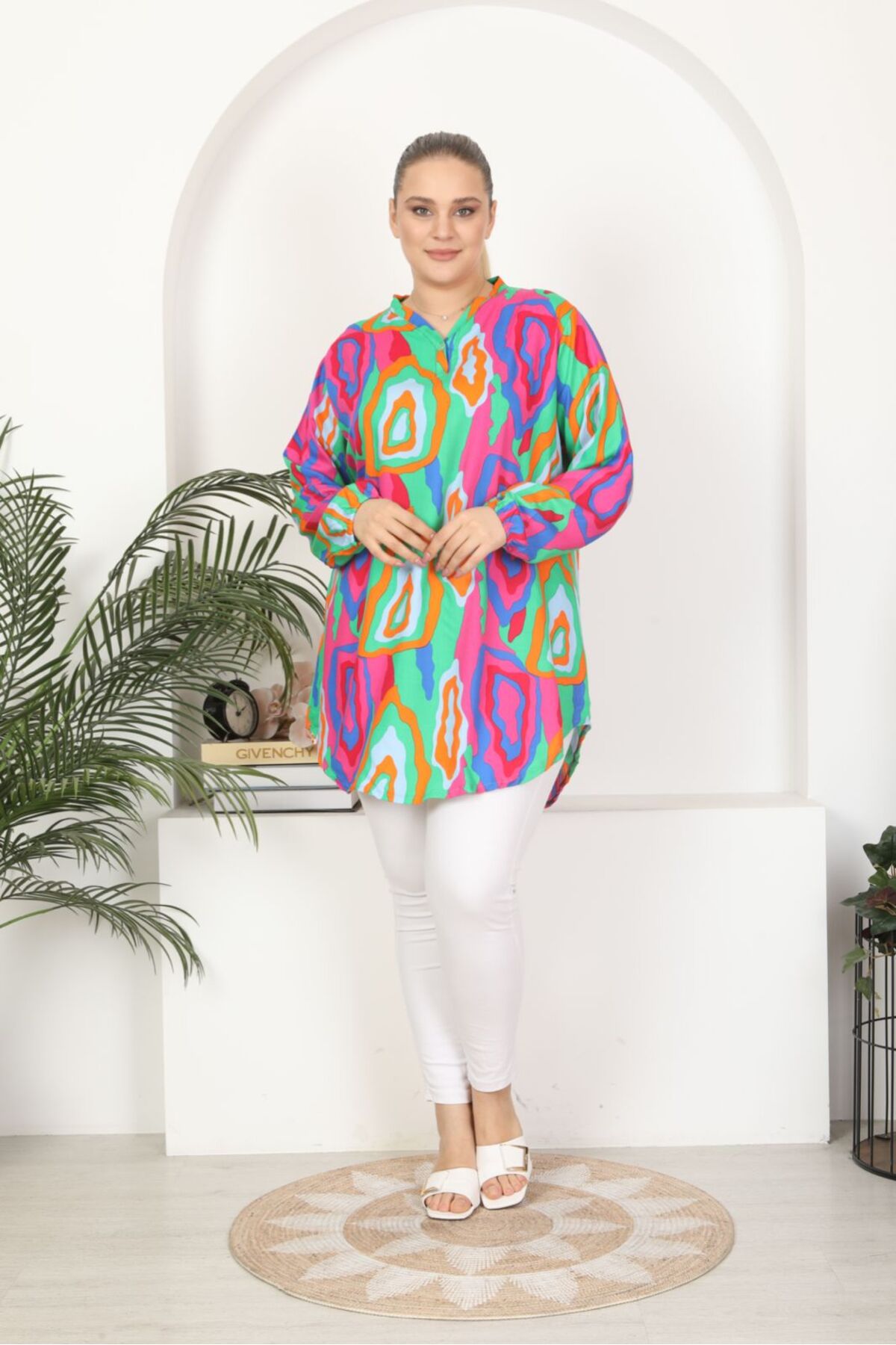 Dokuma viskon yumuşak rahat desenli tunik